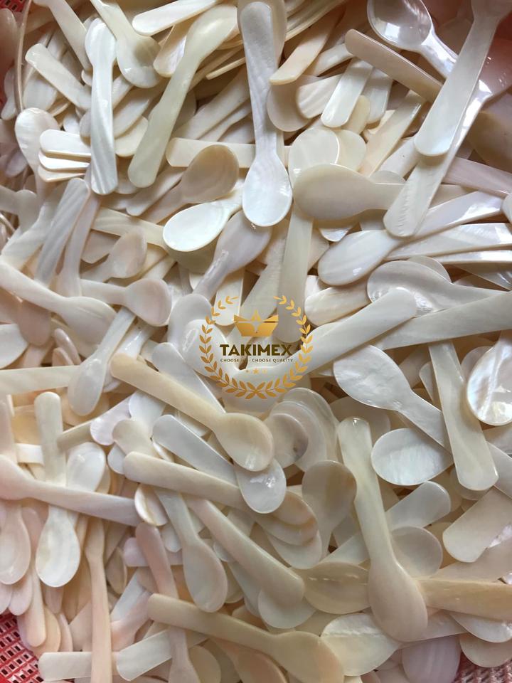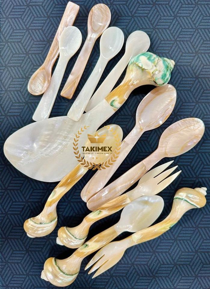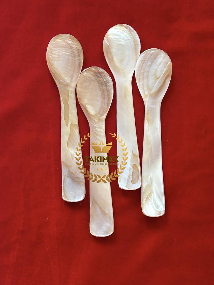 ช้อนหอยมุกสวยงามหรูหราสำหรับรับประทานอาหารพรีเมียมเครื่องใช้บนโต๊ะอาหารที่ทำด้วยมือของตกแต่งกาแฟคาเวียร์โยเกิร์ต