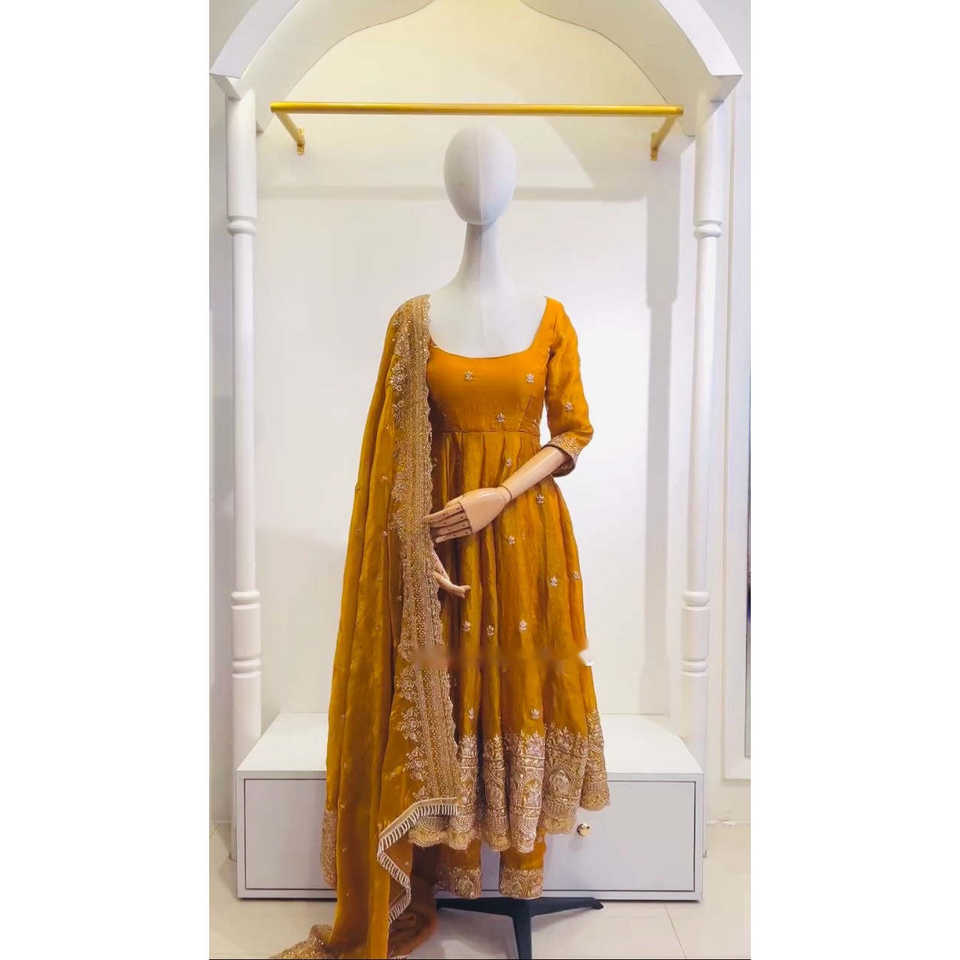 Beautiful Embroidered Indian and Pakistani Gown with Dupatta Sequence Work Pent