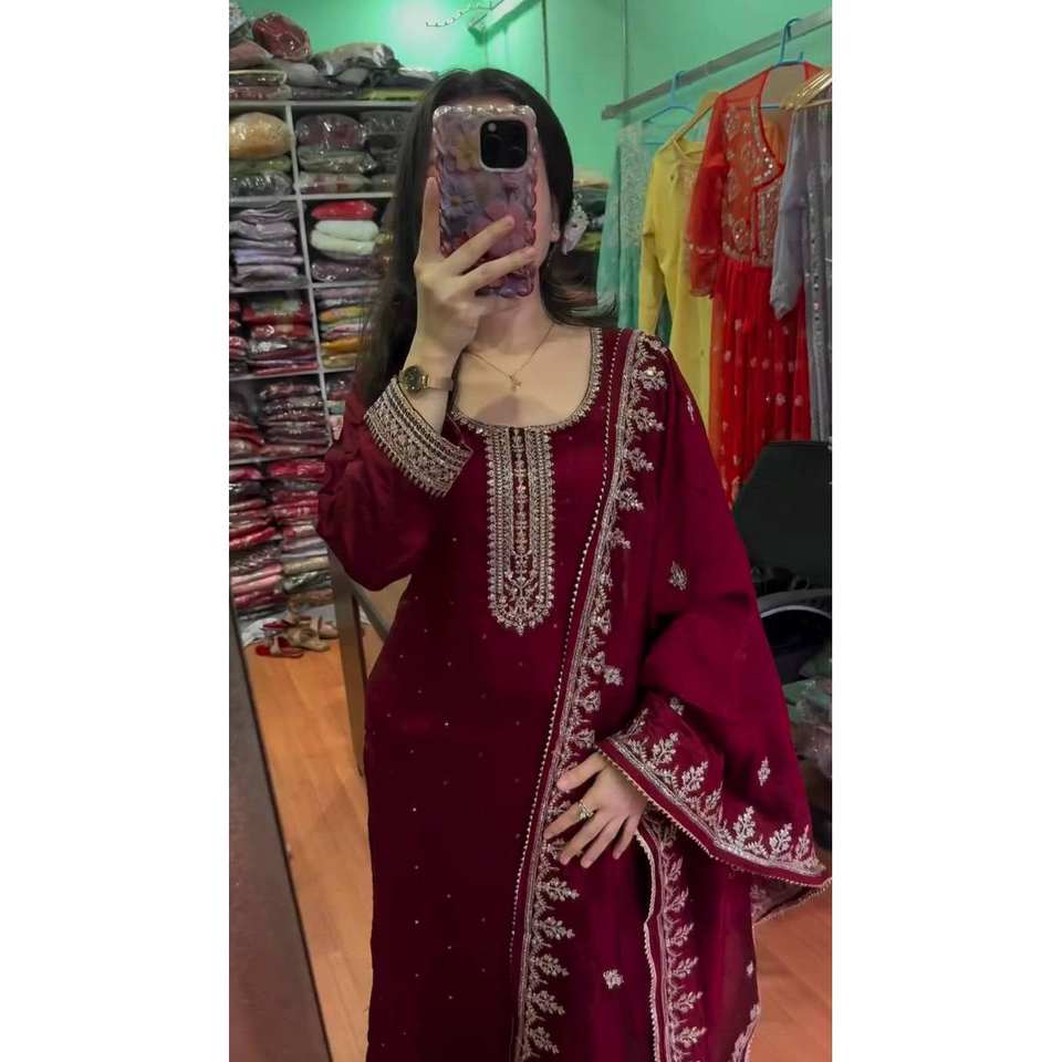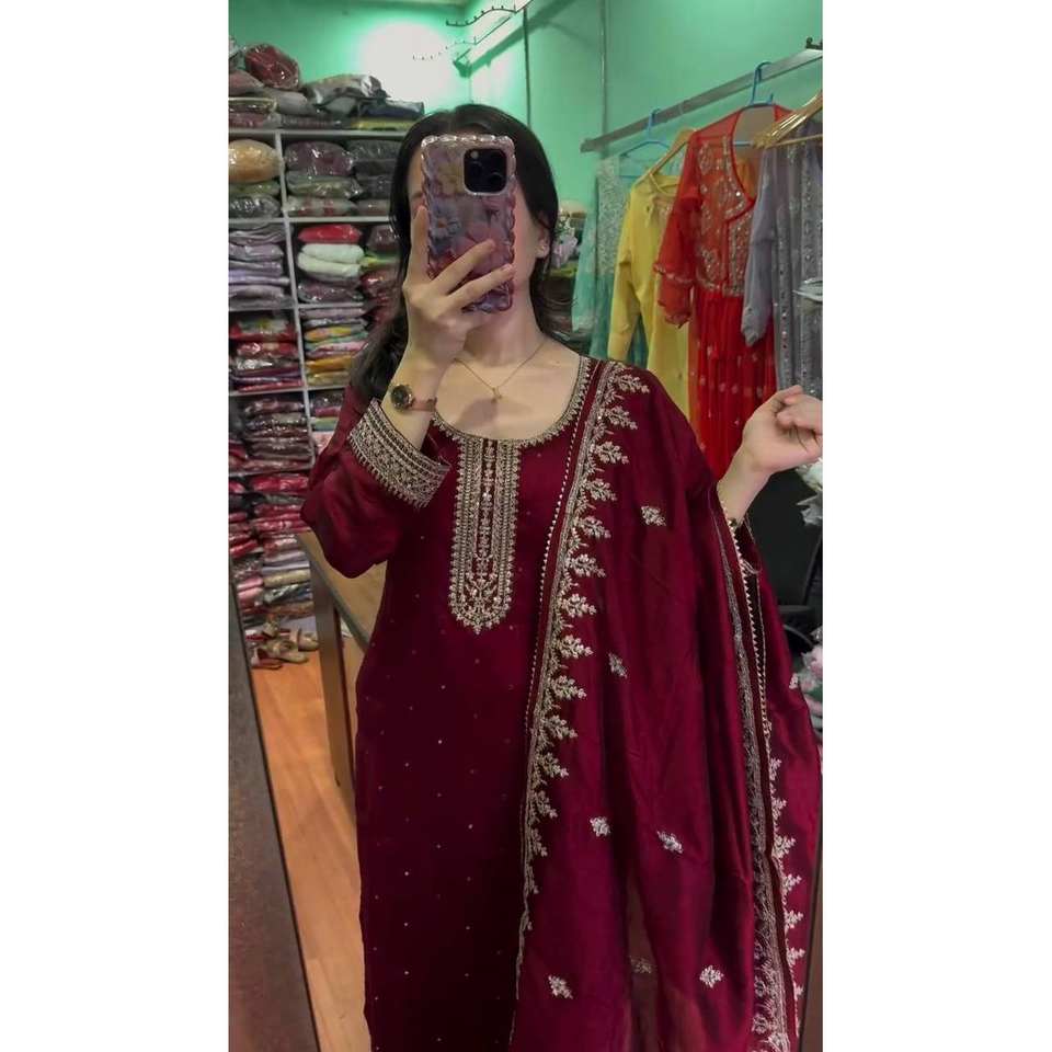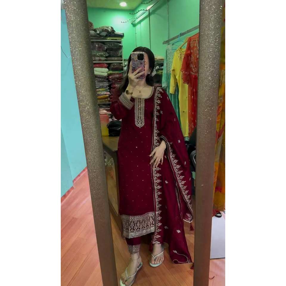 Beautiful Embroidered Top-Bottom and Dupatta Salwar Kameez XL Size Polyester for Weddings