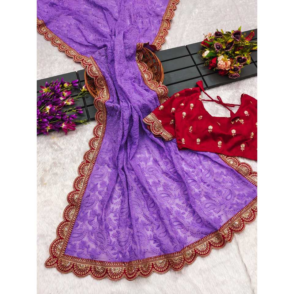 ผ้าส่าหรีงานปักเลื่อมสวยงามสำหรับงานปาร์ตี้ เสื้อผ้าอินเดียและปากีสถาน