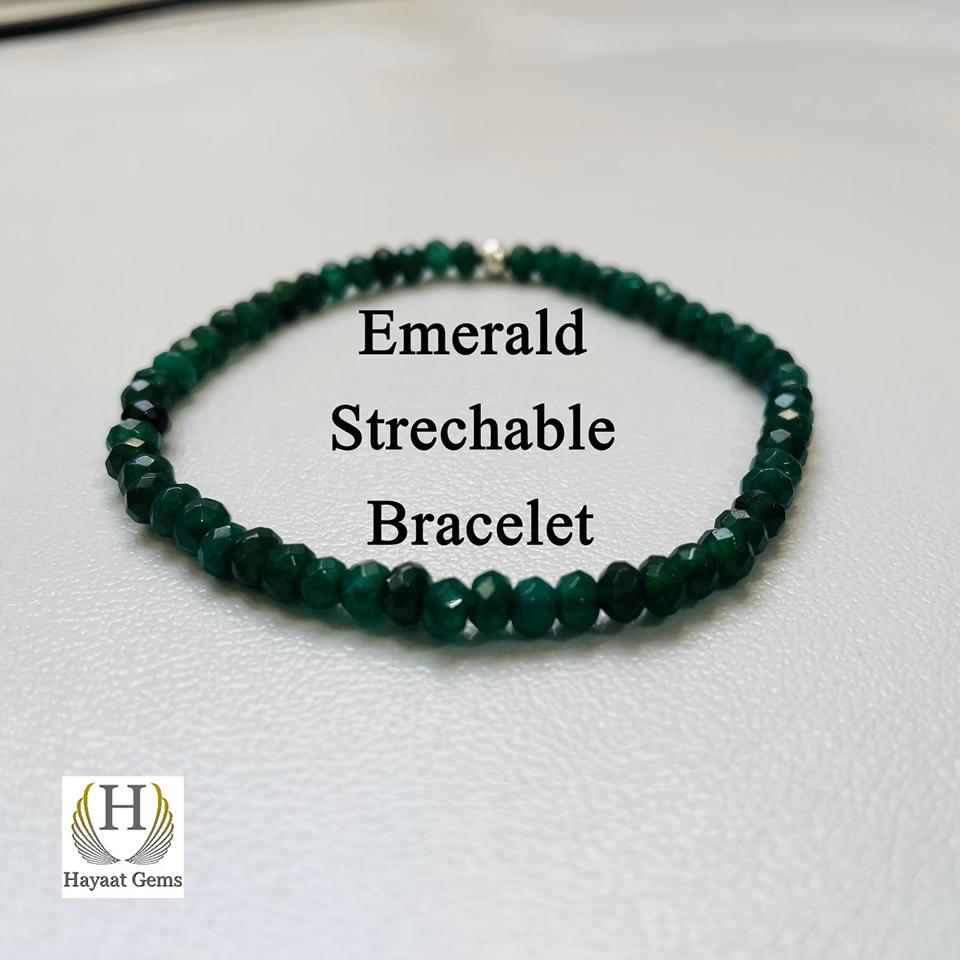 สร้อยข้อมือคริสตัลสีเขียวมรกตสวยงามลูกปัดเครื่องประดับมุกสีเขียวยืดได้สำหรับผู้หญิงเครื่องประดับคริสตัลแบบหลวม DIY