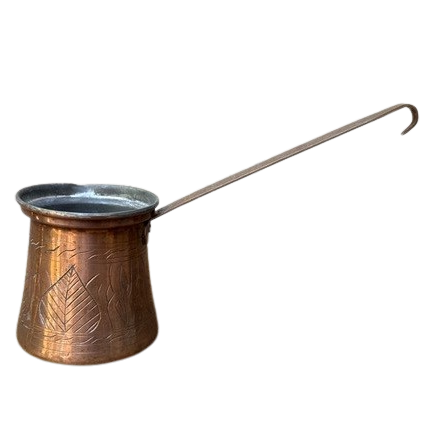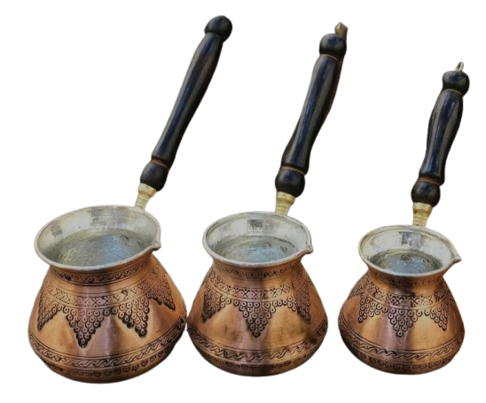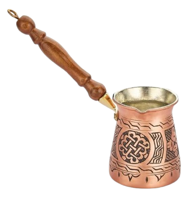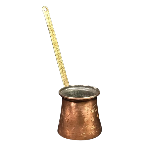 กาต้มกาแฟทองเหลืองทองแดงสลักลายสวยงาม สไตล์ตุรกี กรีก อาหรับ ใช้กับเตาแก๊ส พร้อมด้ามจับไม้