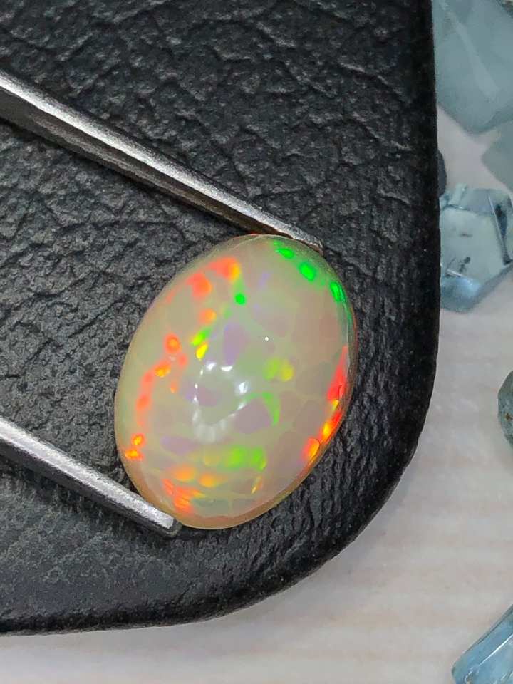 อัญมณีโอปอลทรงรีสไตล์เอธิโอเปียนสวยงามอัญมณีโอปอลจากธรรมชาติทรงหลวมขัดเงาเรียบหลายสีสำหรับเครื่องประดับ