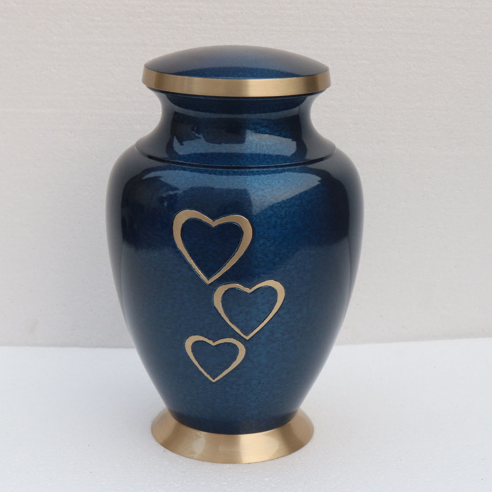โกศเผาศพโลหะสไตล์ยุโรปสวยงาม ขนาดเล็ก ลายหัวใจสามดวง มีหลายสีให้เลือก สำหรับเก็บอัฐิ HHO