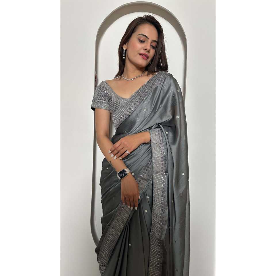 ชุดส่าหรีใส่ทำงานประดับหินสำหรับงานปาร์ตี้
