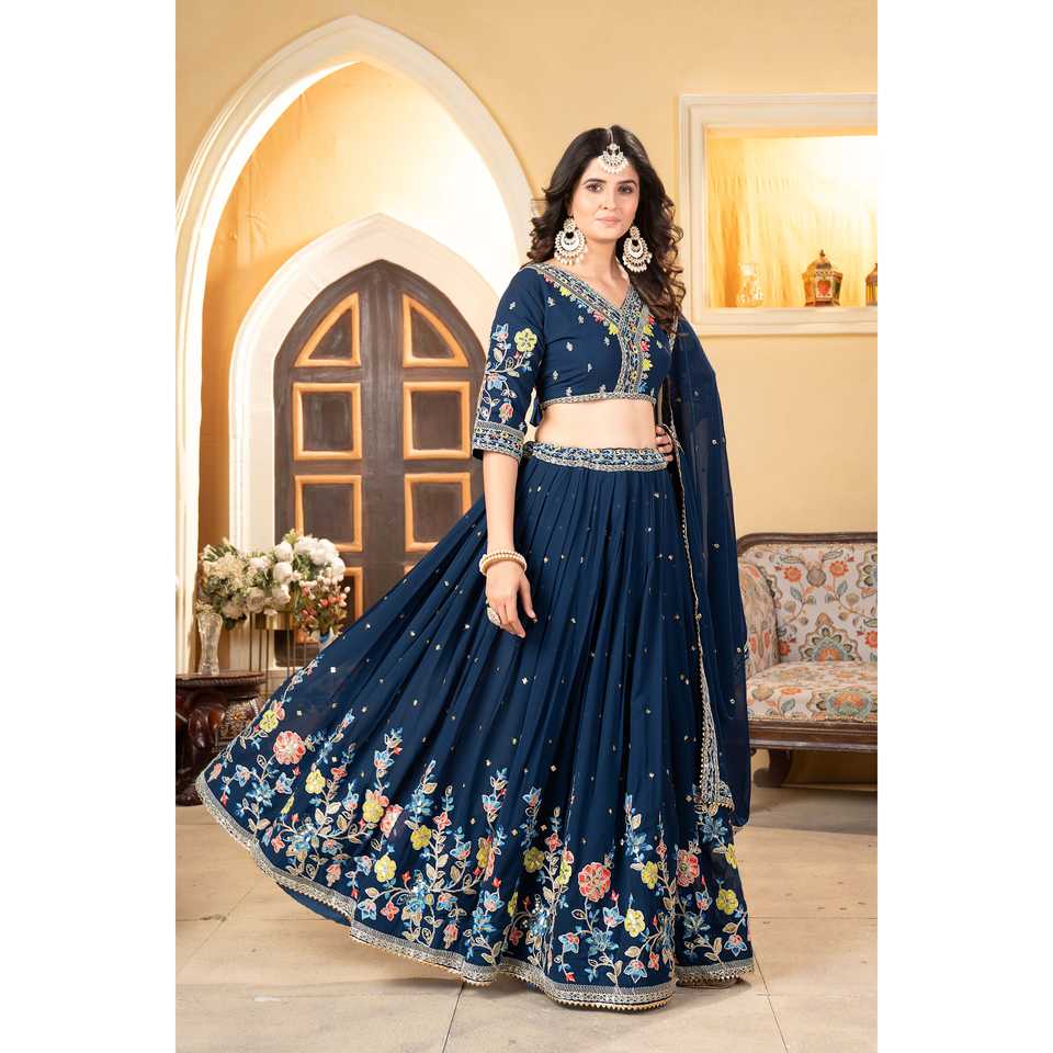 ชุดเดรสปาร์ตี้ตอนเย็นสวยๆ lehenga choli พร้อมการเข้ารหัสและลำดับการทำงานที่ซับซ้อน
