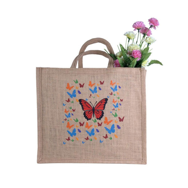 กระเป๋าช้อปปิ้งผ้ากระสอบหูหิ้วบุอย่างดี สวยงาม หรูหรา พิมพ์ลาย พร้อมหูหิ้ว ราคาถูก คุณภาพสูง ผลิตในอินเดีย