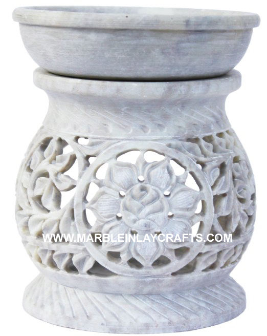 เครื่องพ่นน้ำมันสำหรับตกแต่งบ้านดีไซน์ลายดอกไม้สวยงามบนหินสบู่ธรรมชาติโค้งมน