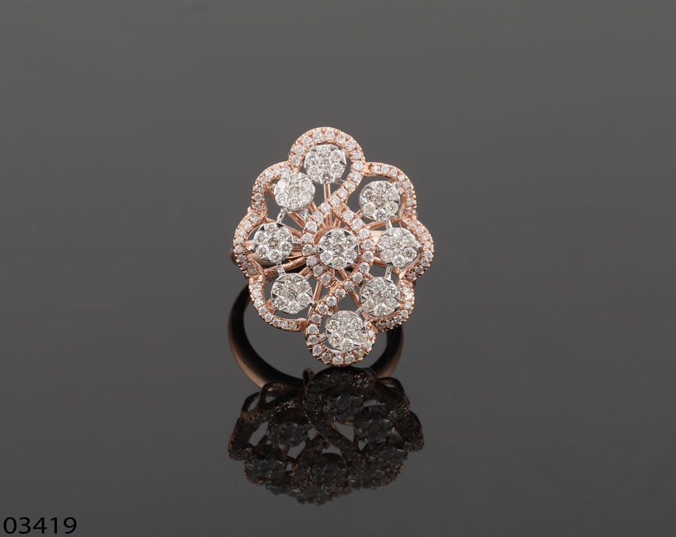 แหวนเพชรลายดอกไม้ป่าแหวนกระซิบสำหรับผู้หญิงทอง14K/18K สวยสำหรับปาร์ตี้