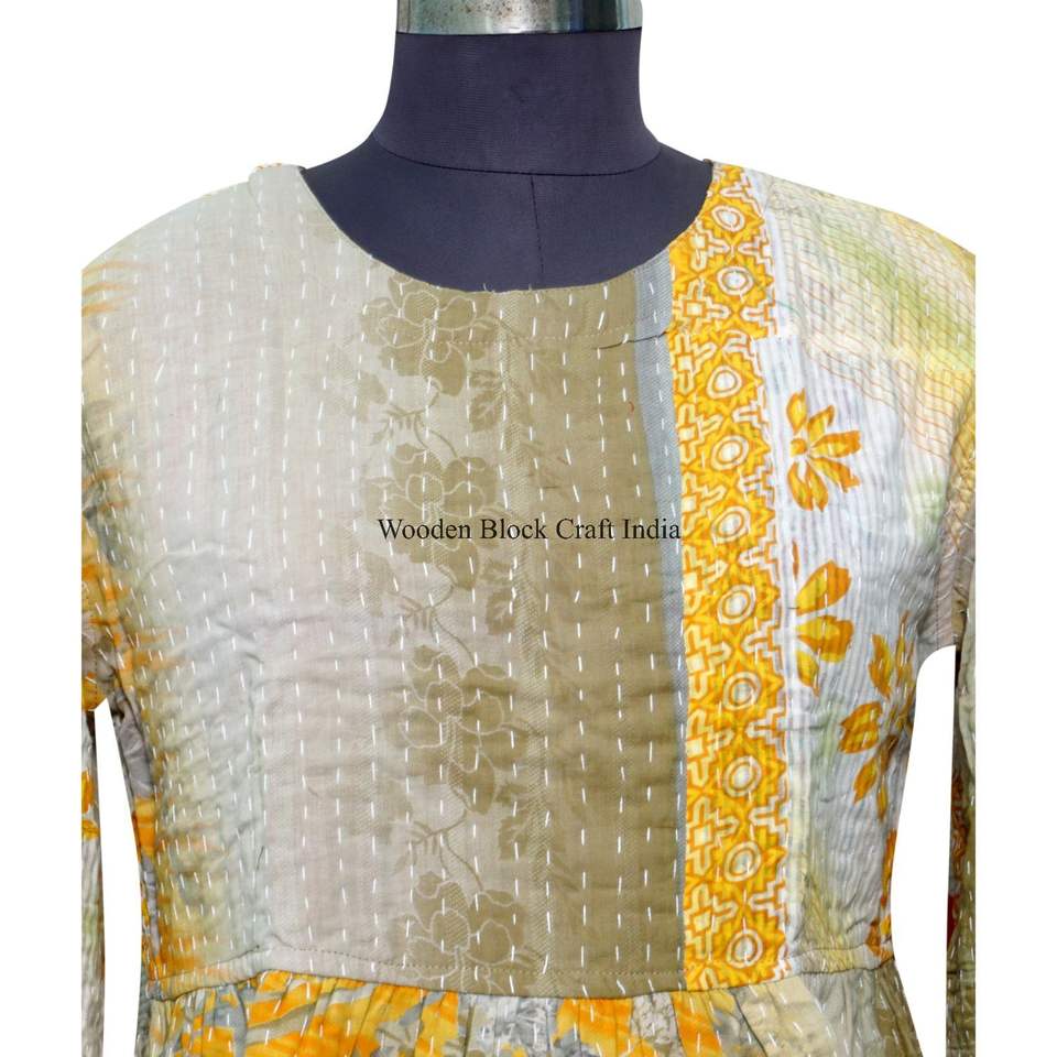ชุดเดรสผ้าคันธาลายดอกไม้สวยงามสำหรับผู้หญิง ชุดคลุมท้องผ้าฝ้ายอินเดียแบบยาวเต็มตัว ชุดเดรสลูกไม้สำหรับฤดูร้อนและฤดูใบไม้ผลิ