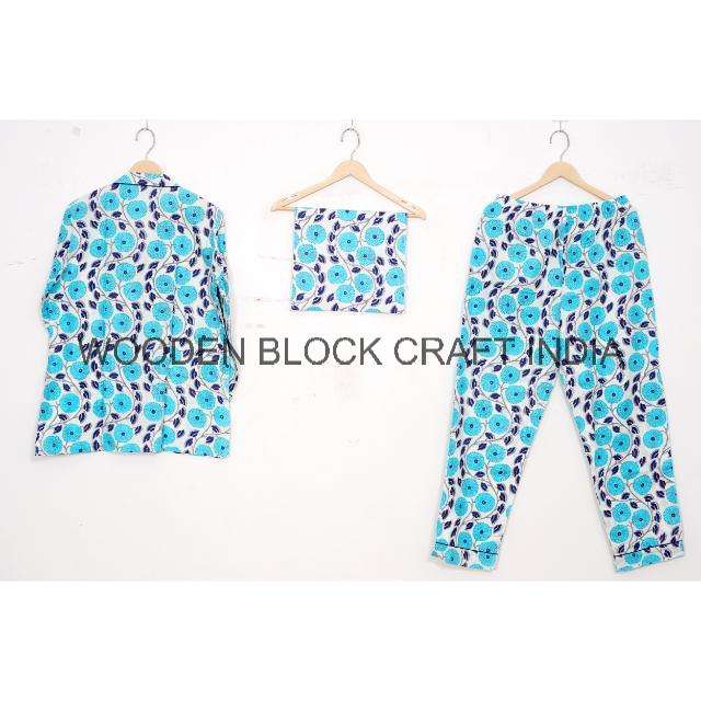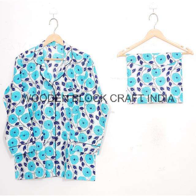ชุดนอนผ้าฝ้ายลายดอกไม้สวยงาม เสื้อและกางเกงเข้าชุด นุ่มเบาสบาย เหมาะสำหรับฤดูร้อน ชุดนอนสำหรับผู้หญิง ชุดนอนกลางคืน