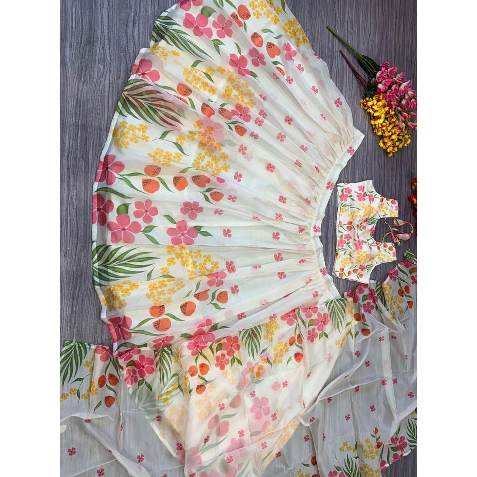 Beautiful Floral Print Party Wear Lehenga Choli Elegant Evening Dresses
