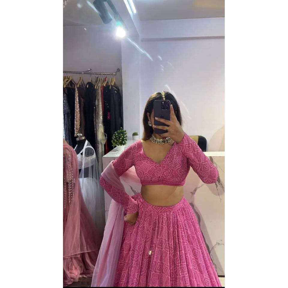 ชุดเลเฮนกาโชลีลายดอกไม้สวยงามสำหรับงานปาร์ตี้ ชุดราตรีหรูหรา