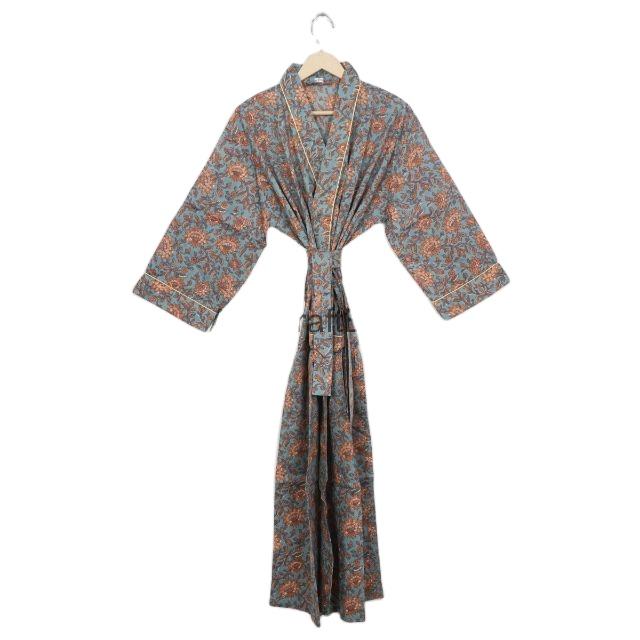 ชุดกิโมโนผ้าฝ้ายสไตล์อินเดียสำหรับผู้หญิงชุดคลุมใส่นอนใส่สบายทุกฤดูพิมพ์ลายดอกไม้สวยงามสำหรับฤดูร้อน