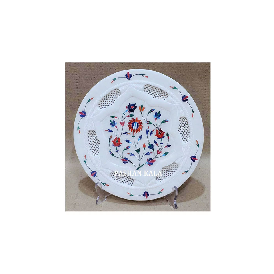 แผ่นหินอ่อนสีขาวลายดอกไม้สวยงามฝังบนแผ่นหินทรงกลม ผู้ค้าส่ง พร้อมการตกแต่งอย่างประณีตและราคาประหยัด
