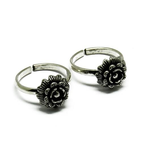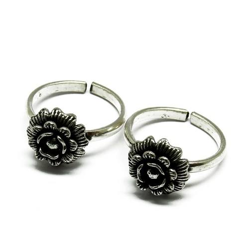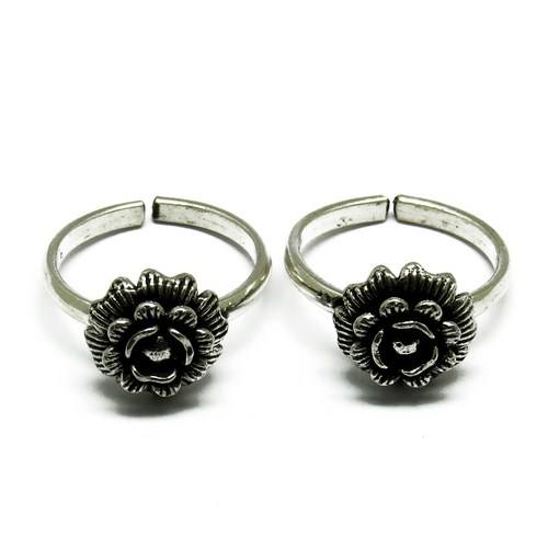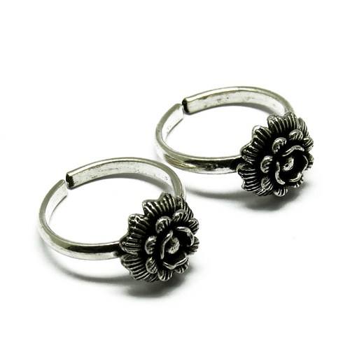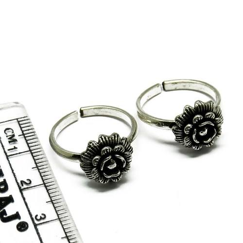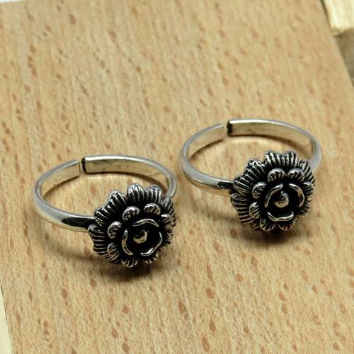 ดอกไม้ที่สวยงามออกซิไดซ์ธรรมดาเงิน925เงินสเตอร์ลิงนิ้วเท้าแหวนปรับ
