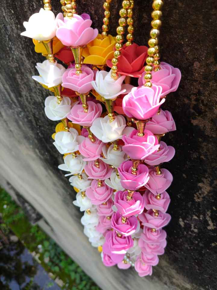 วัสดุ:ดอกไม้โฟมประดิษฐ์, พลาสติก, ด้าย