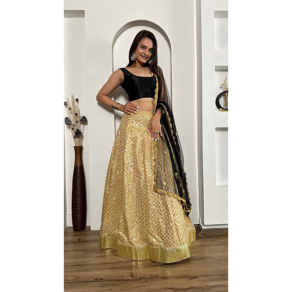 ชุดเลเฮนกาโชลีงานปักขอบฟอยล์สวยงาม สำหรับงานแสดงและงานปาร์ตี้