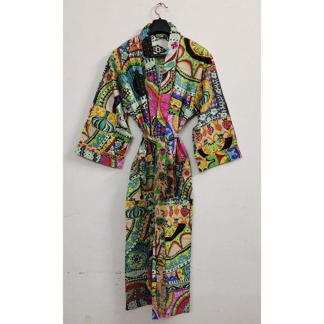 ชุดกิโมโนอินเดียพิมพ์ลายผลไม้สวยงาม,ชุดเดรสผ้าฝ้ายแท้100% สำหรับใส่เดินชายหาดชุดนอนชุดกิโมโนยาว
