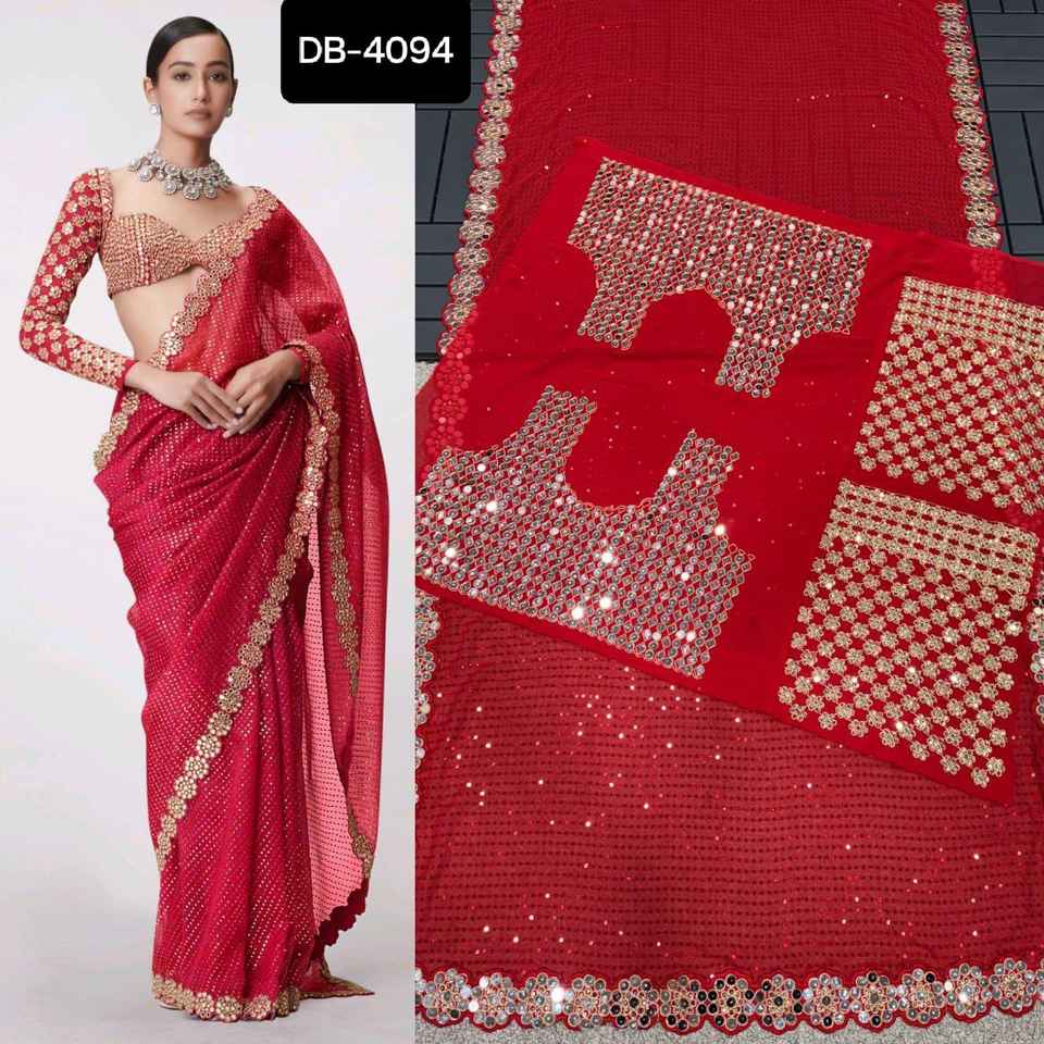 Beautiful Georgette Blue Georgette Plain Party Wear Saree With Georgette Blouse For Party Wear Ethnic Clothes and Saree Suit