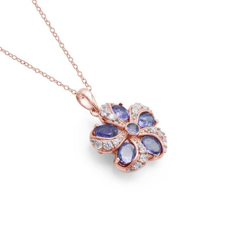 Beautiful Gold Plated Floral Tanzanite Pendant Necklace Jewelry Christmas Gift For Women 925 Stamped Silver Pendant For Chain