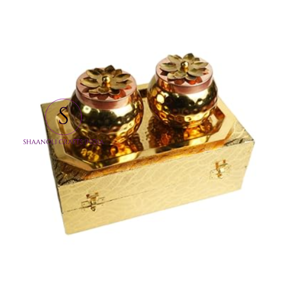 กระปุกทองแดงทรงกลมลายดอกไม้สีทองสวยงาม สำหรับใส่ผลไม้อบแห้ง ของชำร่วยงานแต่งงาน