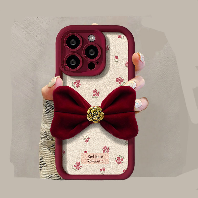 Beautiful Golden Rose With Big Plush Bowknot TPU Mobile Phone Cover Case for Iphone 6 7 8 Plus X Xr XS 11 12 13 14 15 16 Pro Max