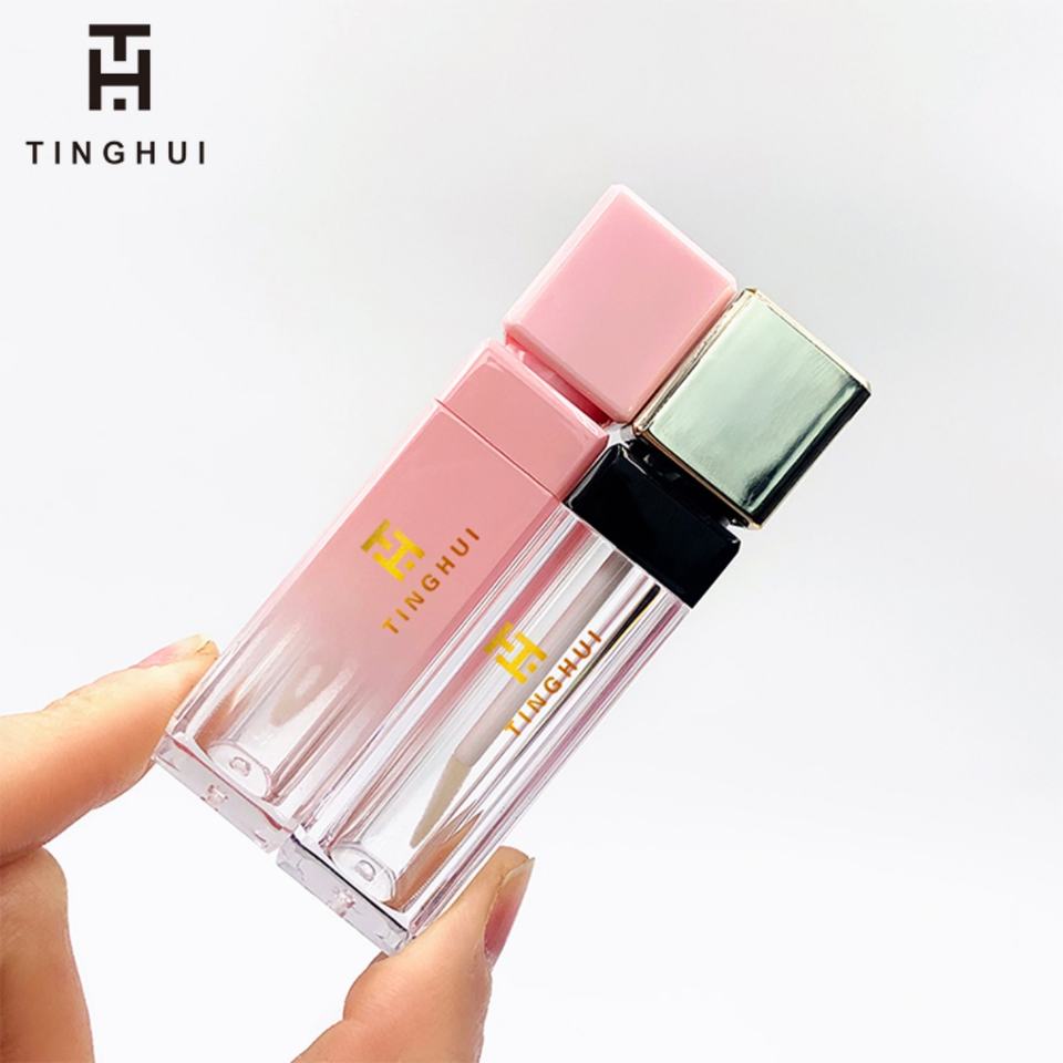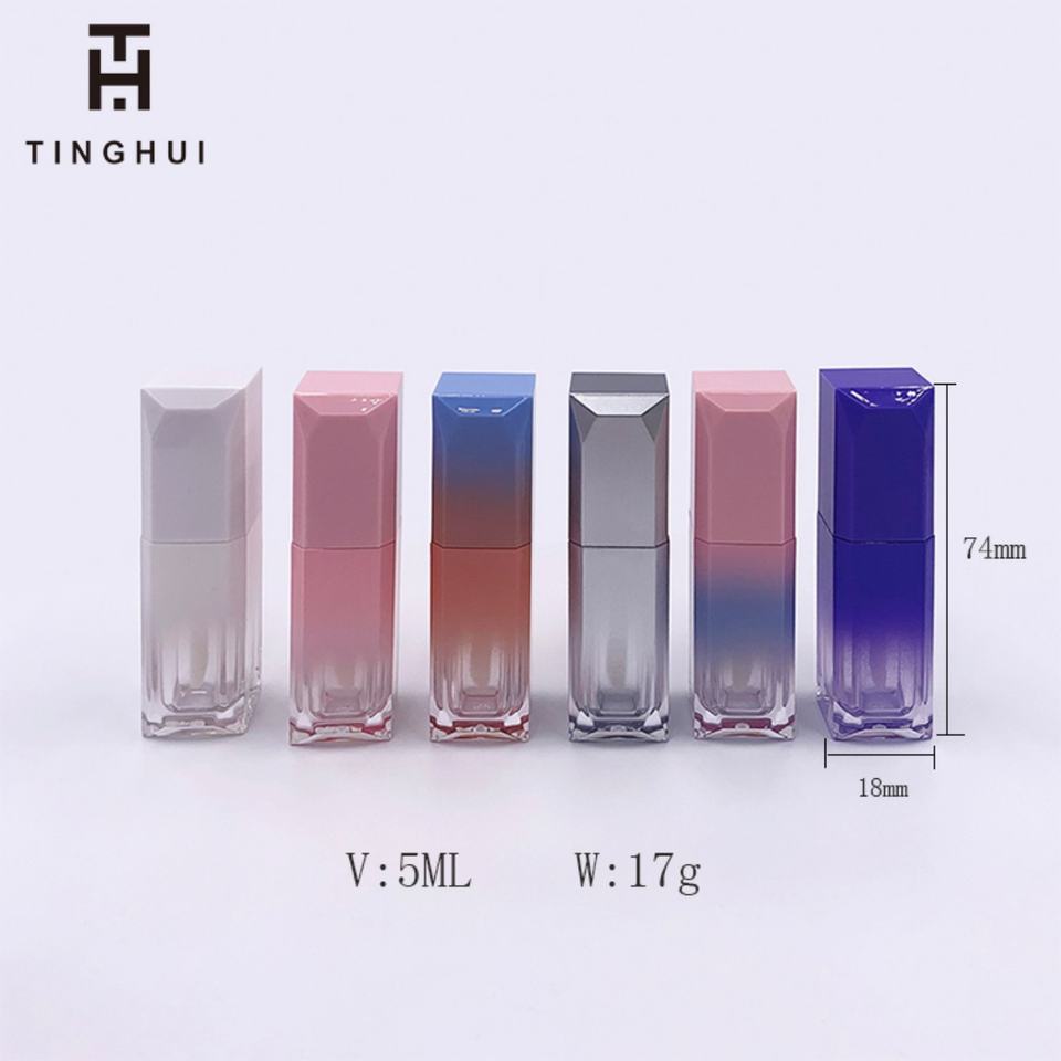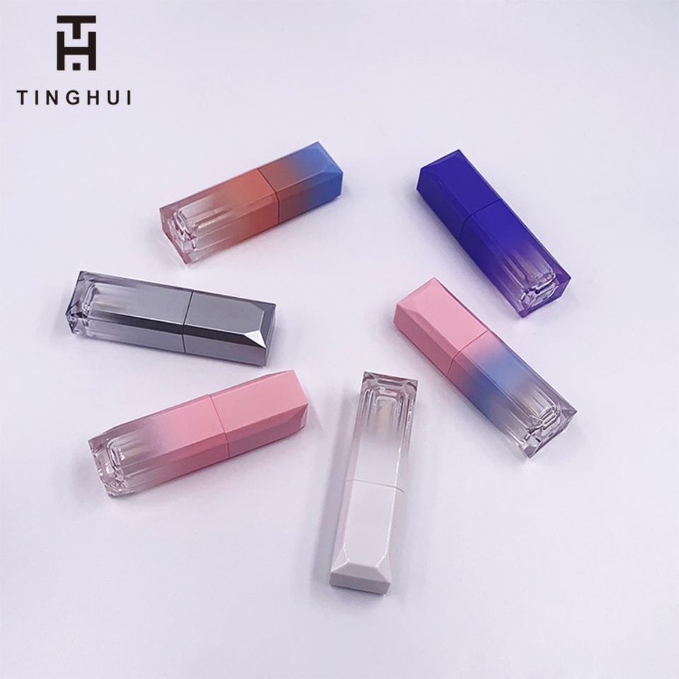 หลอดลิปกลอสทรงสี่เหลี่ยมใสสีขาวไล่เฉดสวยงาม บรรจุภัณฑ์เครื่องสำอางพลาสติกแบบมีเอกลักษณ์