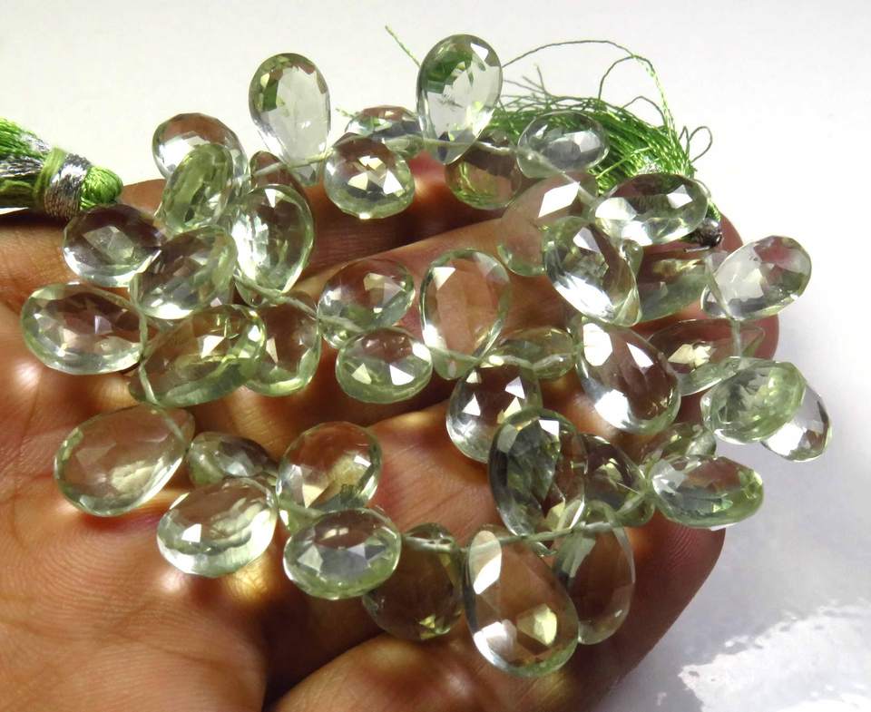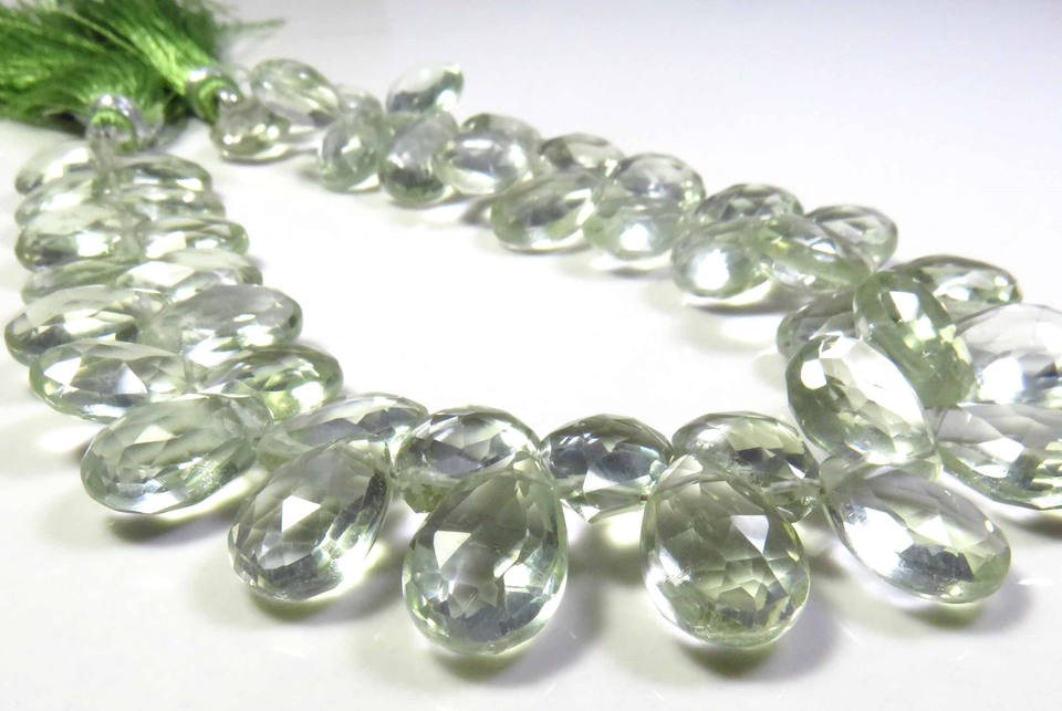 ลูกปัดลูกแพร์ทรงเหลี่ยมเพชรพลอยธรรมชาติขนาด8นิ้วสวยงาม11-13มม. ลูกแพร์สีเขียวตัดเหลี่ยมเพชรพลอย