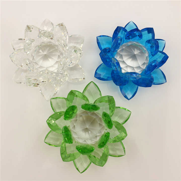 ดอกบัวคริสตัลใสสีเขียวสีฟ้าสวยงามสําหรับตกแต่งและของขวัญของขวัญคริสตัลดอกบัว