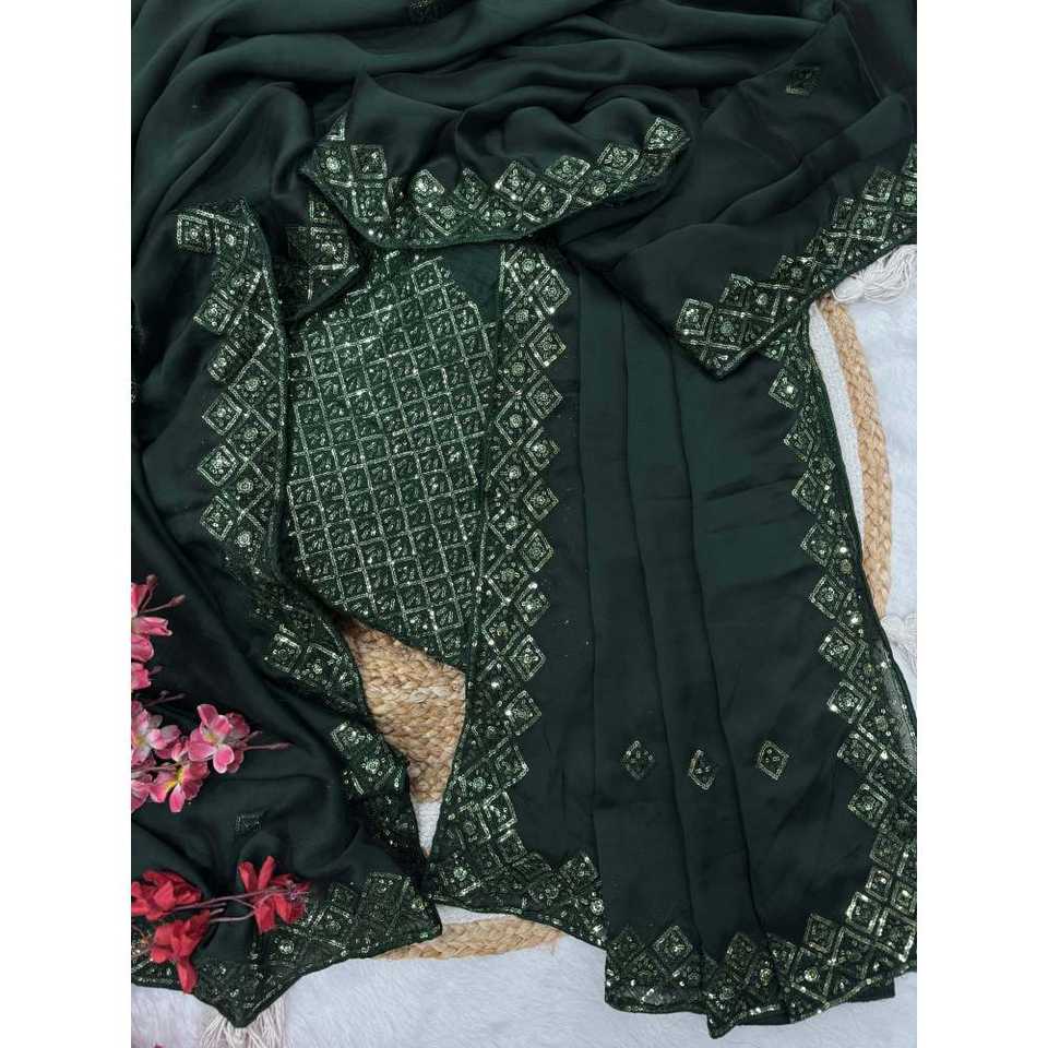 ผ้าส่าหรีงานปักลายสีเขียวสวยงาม ไซส์ M เหมาะสำหรับงานปาร์ตี้ ตกแต่งอย่างหรูหราสำหรับโอกาสพิเศษ