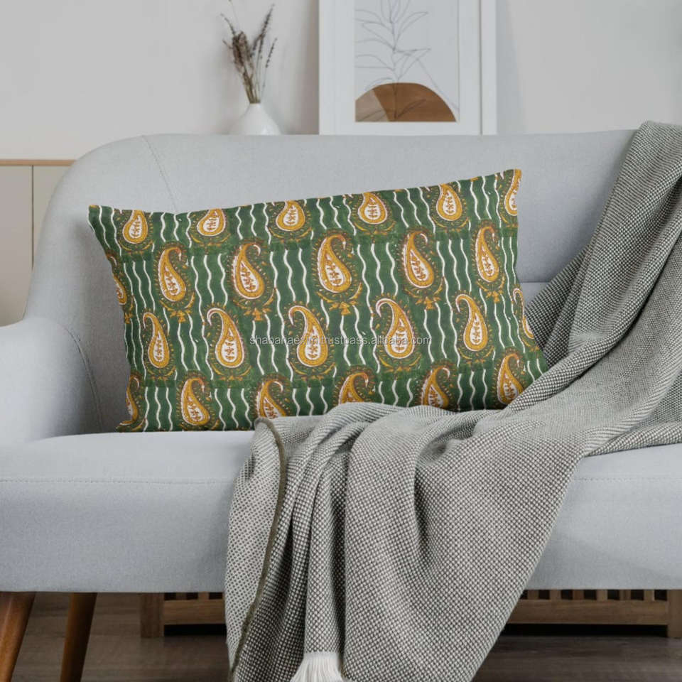 Beautiful Hand Block Yellow Lumbar Printed Slip Cover for Modern and Traditional Home Interiors Printed Sham Cover