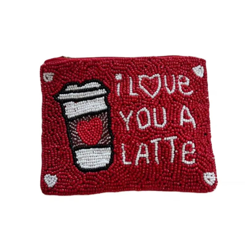 กระเป๋าสตางค์ใบเล็กงานฝีมือประณีต ปักลูกปัด ลาย I LOVE YOU A LATTE ดีไซน์ทันสมัย หรูหรา และพรีเมียม โดยบริษัท ฮิบา เอ็นเตอร์ไพรส์