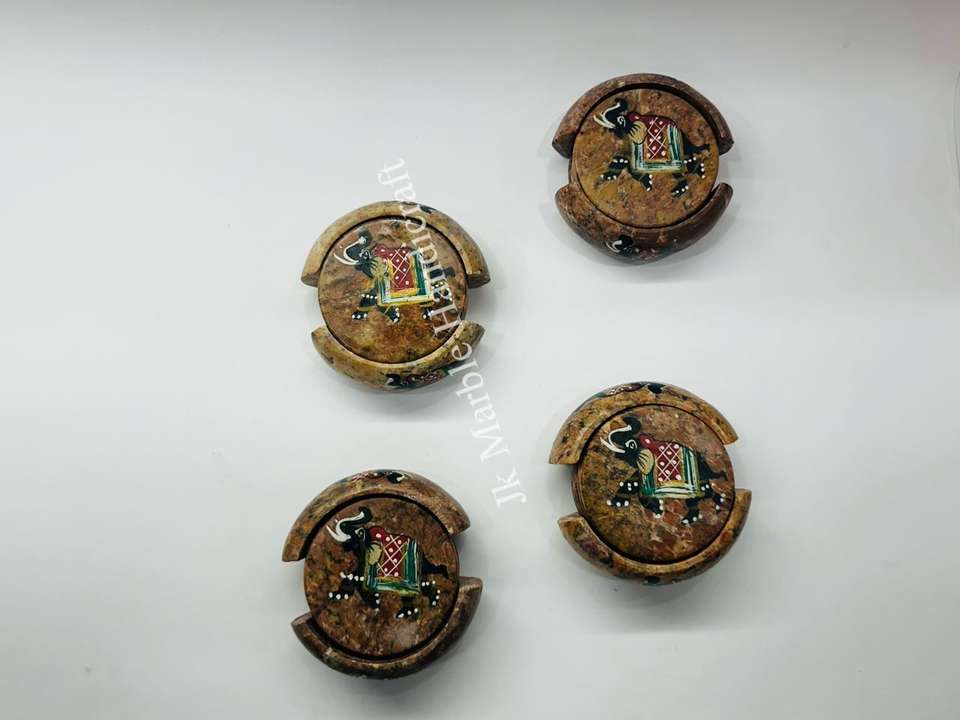 ชุดถาดรองแก้วหินอ่อนลายช้างทำมือสวยงามราคาถูกสำหรับผู้ผลิตในอินเดีย