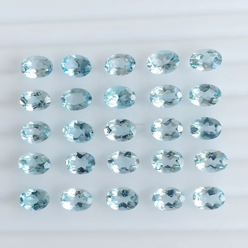 พลอยโทแพซสีฟ้าธรรมชาติทรงรีเจียระไน ขนาด 3x4 มม. งานแฮนด์เมดสวยงาม ราคาขายส่งจากผู้ผลิต