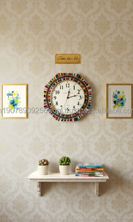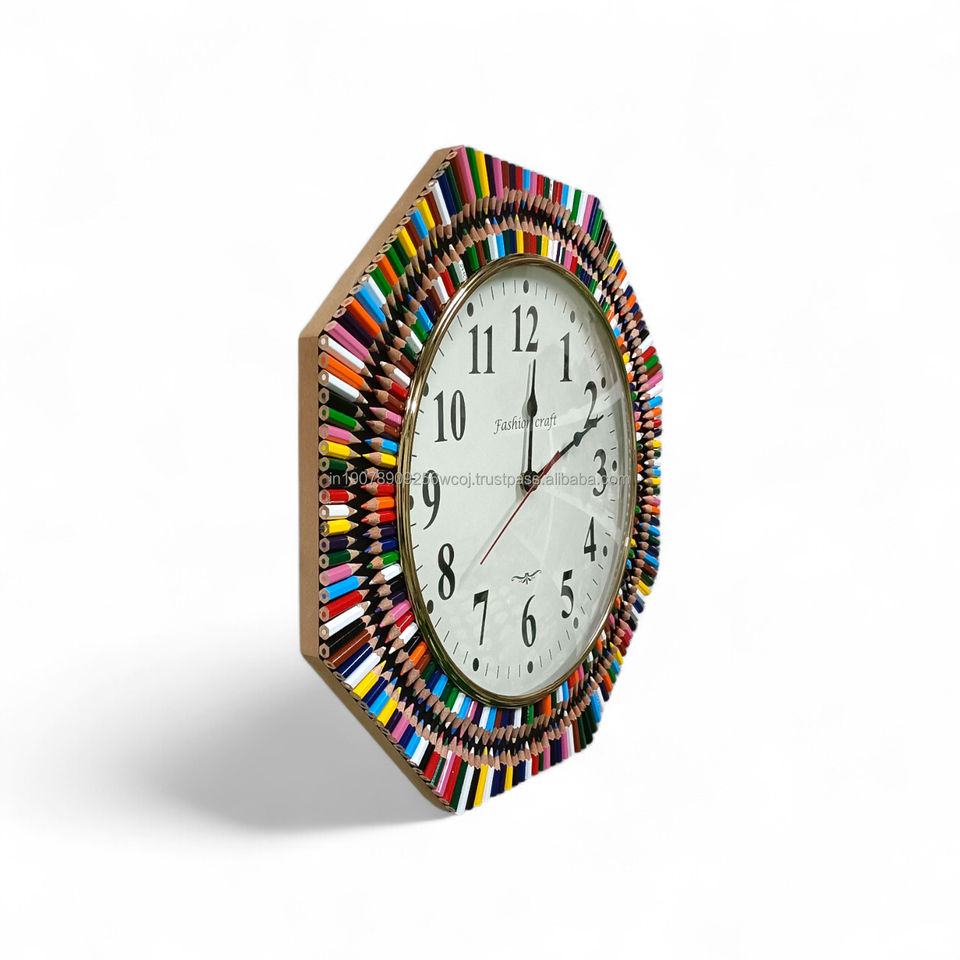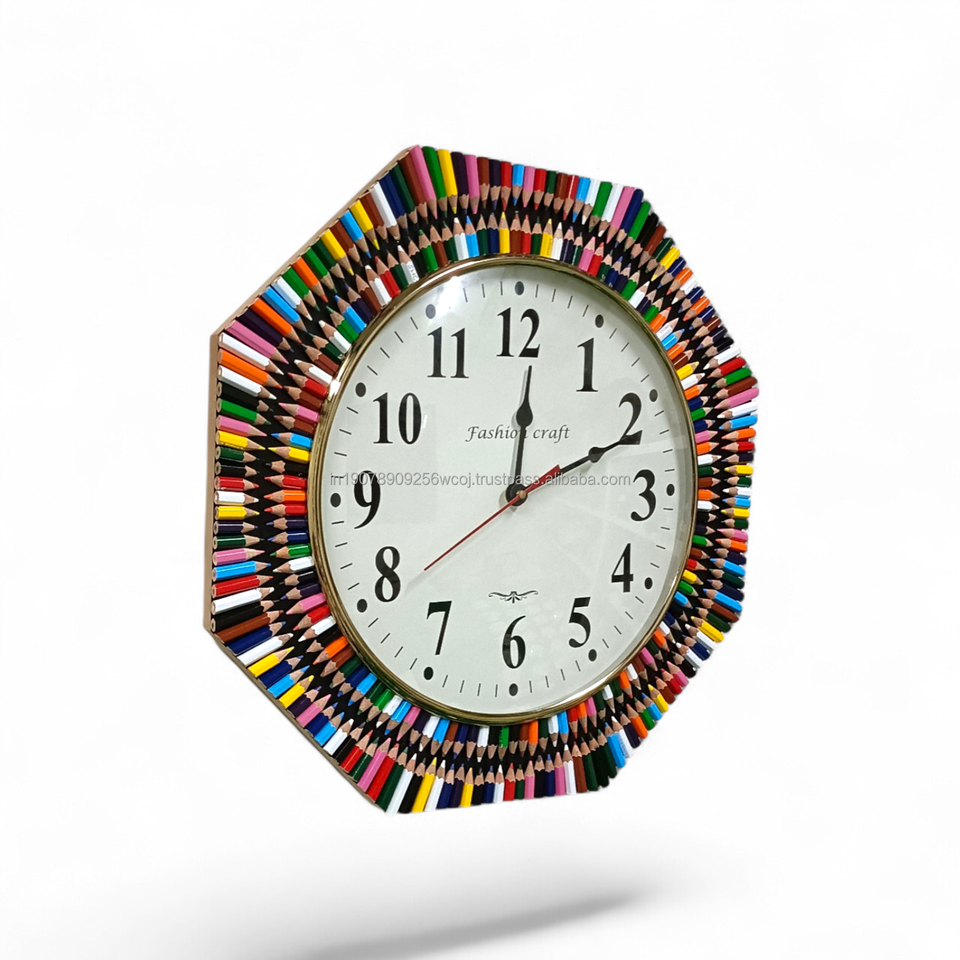 นาฬิกาแขวนผนังทำมือสุดหรูจากดินสอสี สำหรับตกแต่งบ้าน นาฬิกาแขวนผนังไม้สไตล์โมเดิร์นสำหรับห้องนั่งเล่นและตกแต่งผนัง