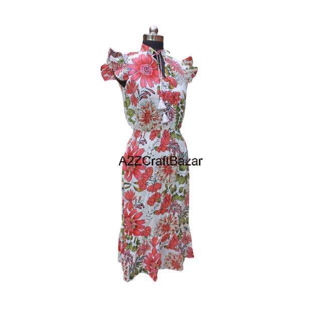 ชุดเดรสมิดิคอวีคอวีผ้าฝ้าย100% ลายดอกไม้พิมพ์ดิจิตอลกระดุมปิดแบบเรียบง่ายเป็นมิตรต่อสิ่งแวดล้อม