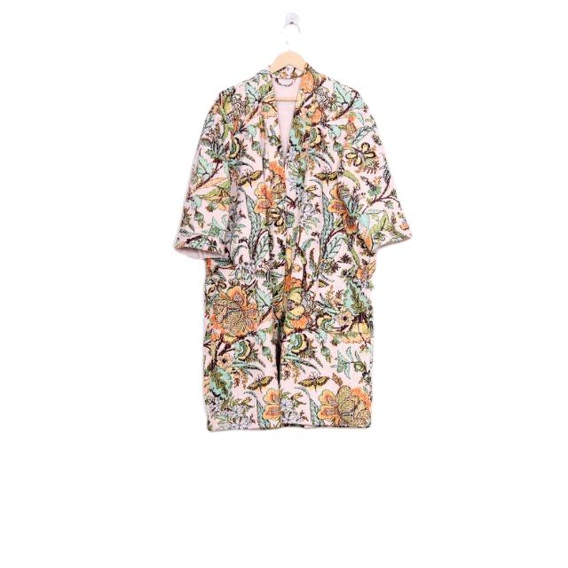 แจ็กเก็ตกันหนาว Kantha ทำด้วยมือสวยงามสำหรับผู้หญิงชุดนอนผ้าฝ้าย100% สไตล์อินเดียฟรีสำหรับใช้ในบ้านฤดูใบไม้ผลิฤดูร้อน