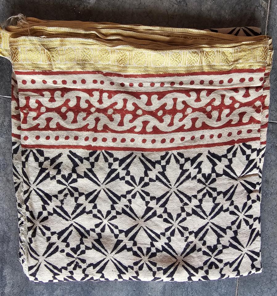 ทำด้วยมือ, Silk Border, Hand Block Printed