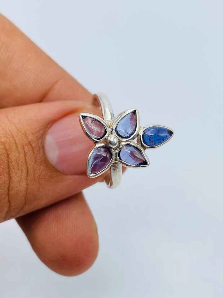 แหวน iolite ทำมือสวยงามแหวนเงินแท้แหวนอัญมณีหรูหราดีไซน์ใหม่ของขวัญที่สมบูรณ์แบบสำหรับเธอ