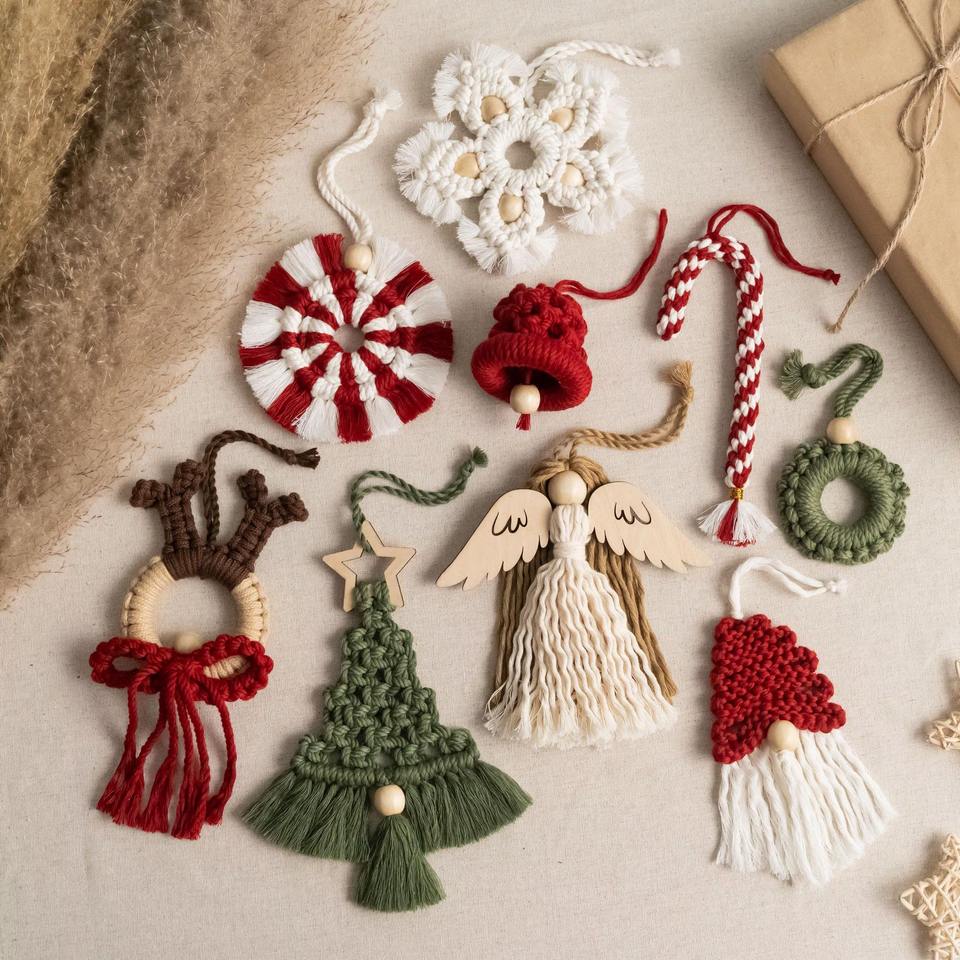 เครื่องประดับต้นคริสต์มาสทำมือสวยงามสไตล์โบโฮ ของตกแต่งแขวนสำหรับบ้านในช่วงเทศกาลวันหยุด นำเข้าจากอินเดีย