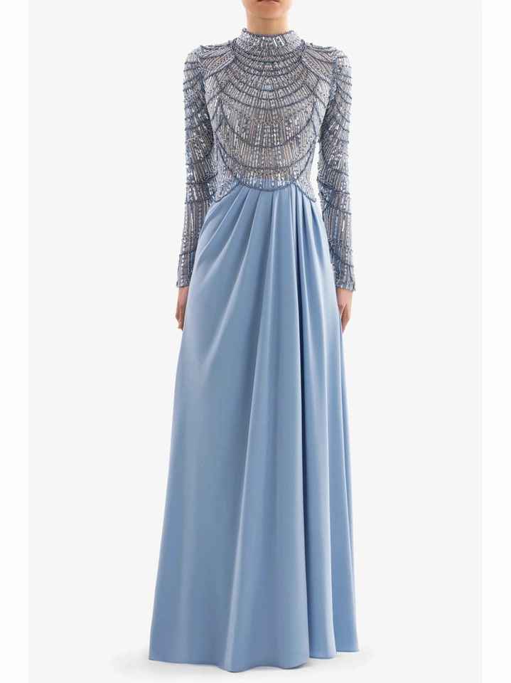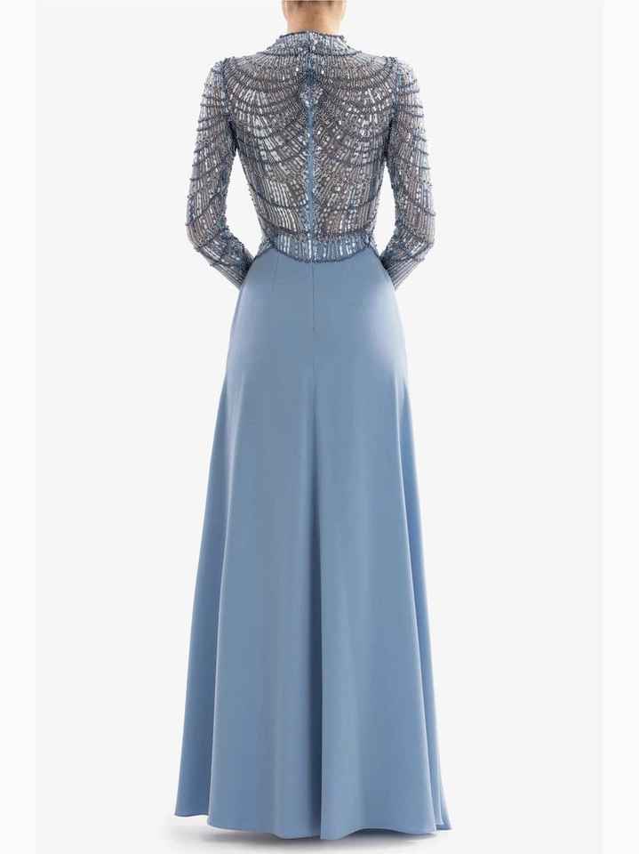 ชุดเดรสยาวงานฝีมือสวยงามสำหรับงานพรอม งานเลี้ยงตอนเย็น งานสังสรรค์ งานดินเนอร์ ออกงานกลางคืน ประดับเลื่อม ทรงเอไลน์ พร้อมโลโก้ด้านหน้า