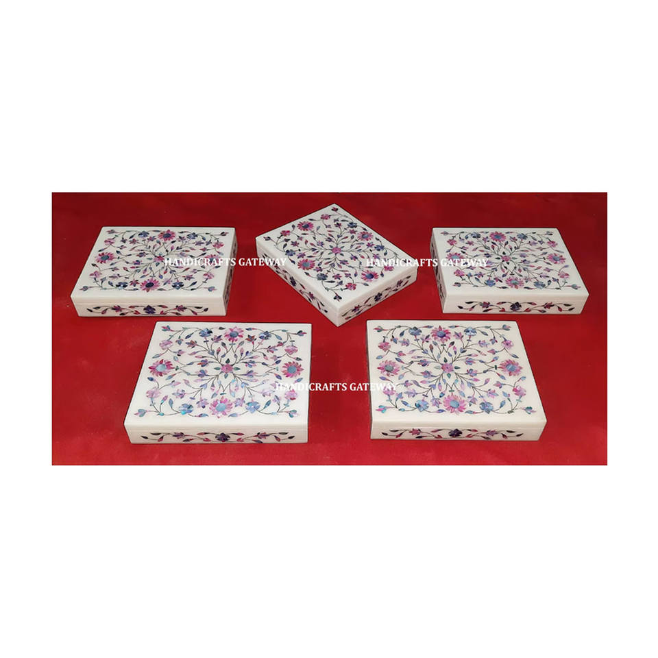กล่องใส่เครื่องประดับทรงสี่เหลี่ยมผืนผ้า ทำด้วยมือสวยงาม ประดับด้วยหินอ่อนสีขาวธรรมชาติผสมมุก ใช้สำหรับเป็นของขวัญเพื่อธุรกิจ