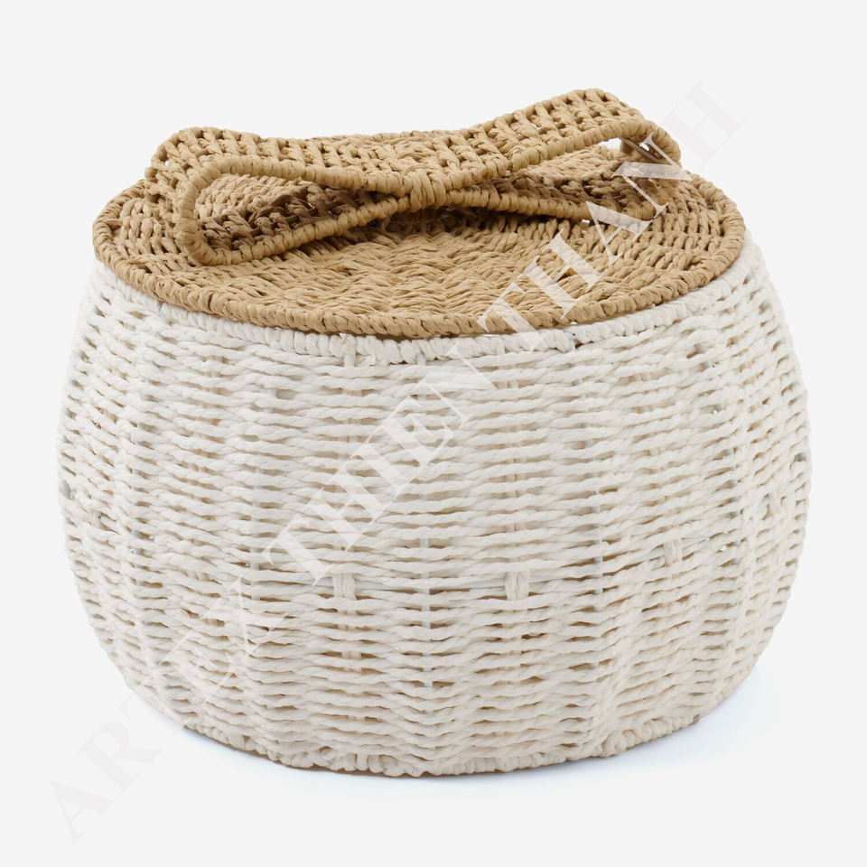 ตะกร้ามีฝากระเป๋ากระดาษทำมือสวยงามมีโบว์ตะกร้าใส่กระดาษงานสานที่ละเอียดอ่อนสำหรับบ้านโรงแรมสำนักงานหรือของตกแต่ง
