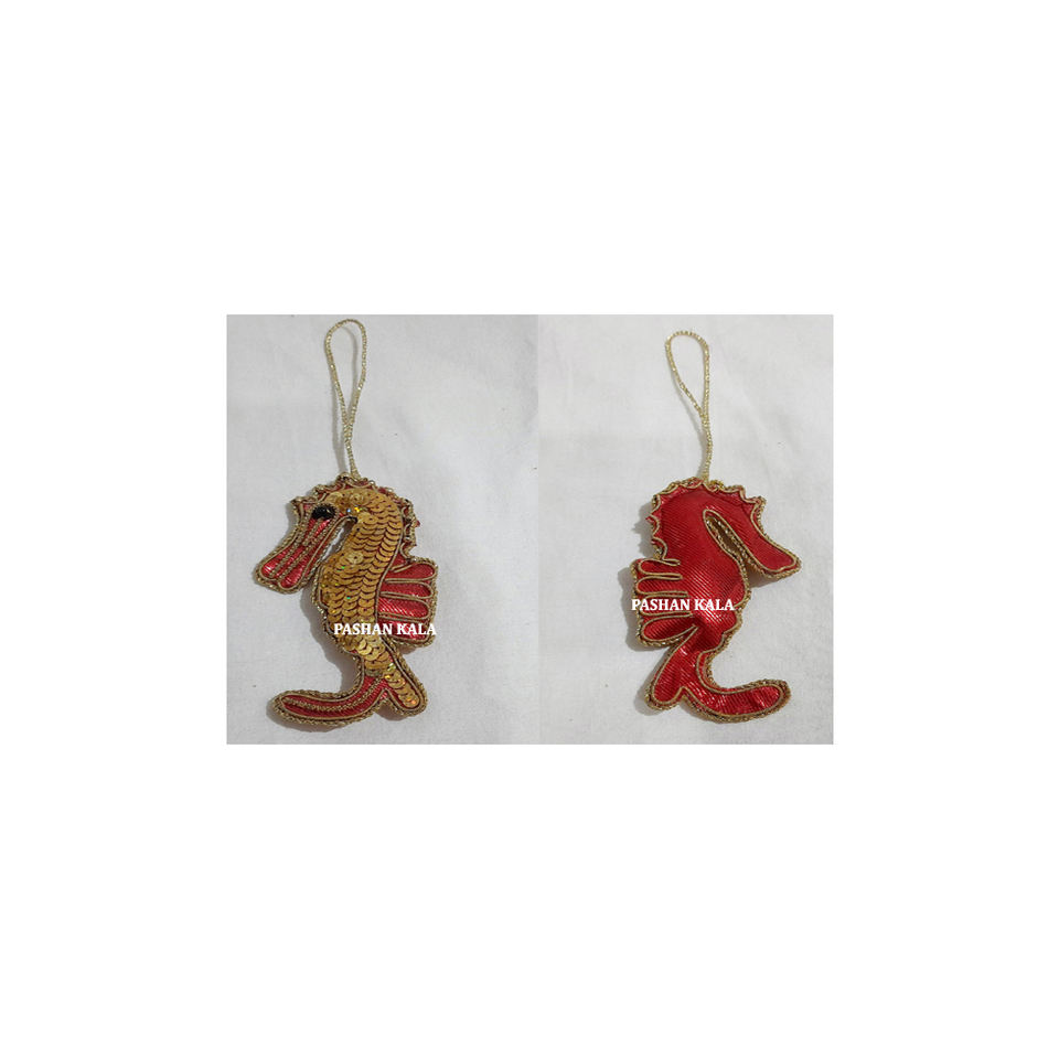 เครื่องประดับแบบแขวนรูปม้าทะเลทำด้วยมือสวยงามแบบปักลาย zari ประดับด้วยลูกปัดของตกแต่งบ้านและของตกแต่งงานปาร์ตี้คริสต์มาส