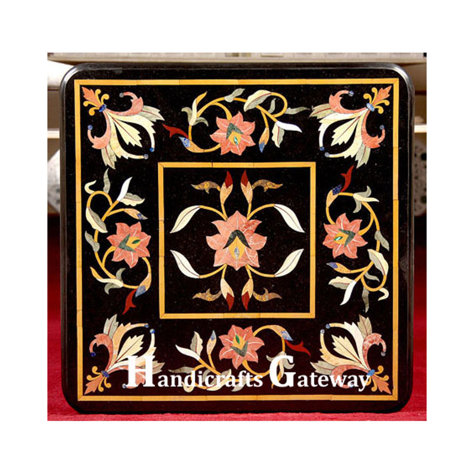 โต๊ะกาแฟแบบฝังหินอ่อนสีดำทำด้วยมือรูปทรงสี่เหลี่ยมสวยงามท็อปโต๊ะสำหรับบ้านและห้องนั่งเล่น