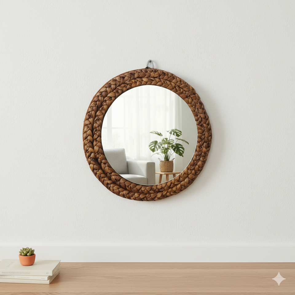 ชื่อผลิตภัณฑ์:กระจกผนังผักตบชวาทำด้วยมือ