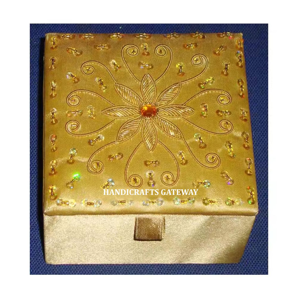 Zari แฮนด์เมดสวยงามปักลูกปัดกล่องเก็บเครื่องประดับรูปทรงสี่เหลี่ยมสำหรับเทศกาลของขวัญขายส่งวัตถุประสงค์ของอินเดีย