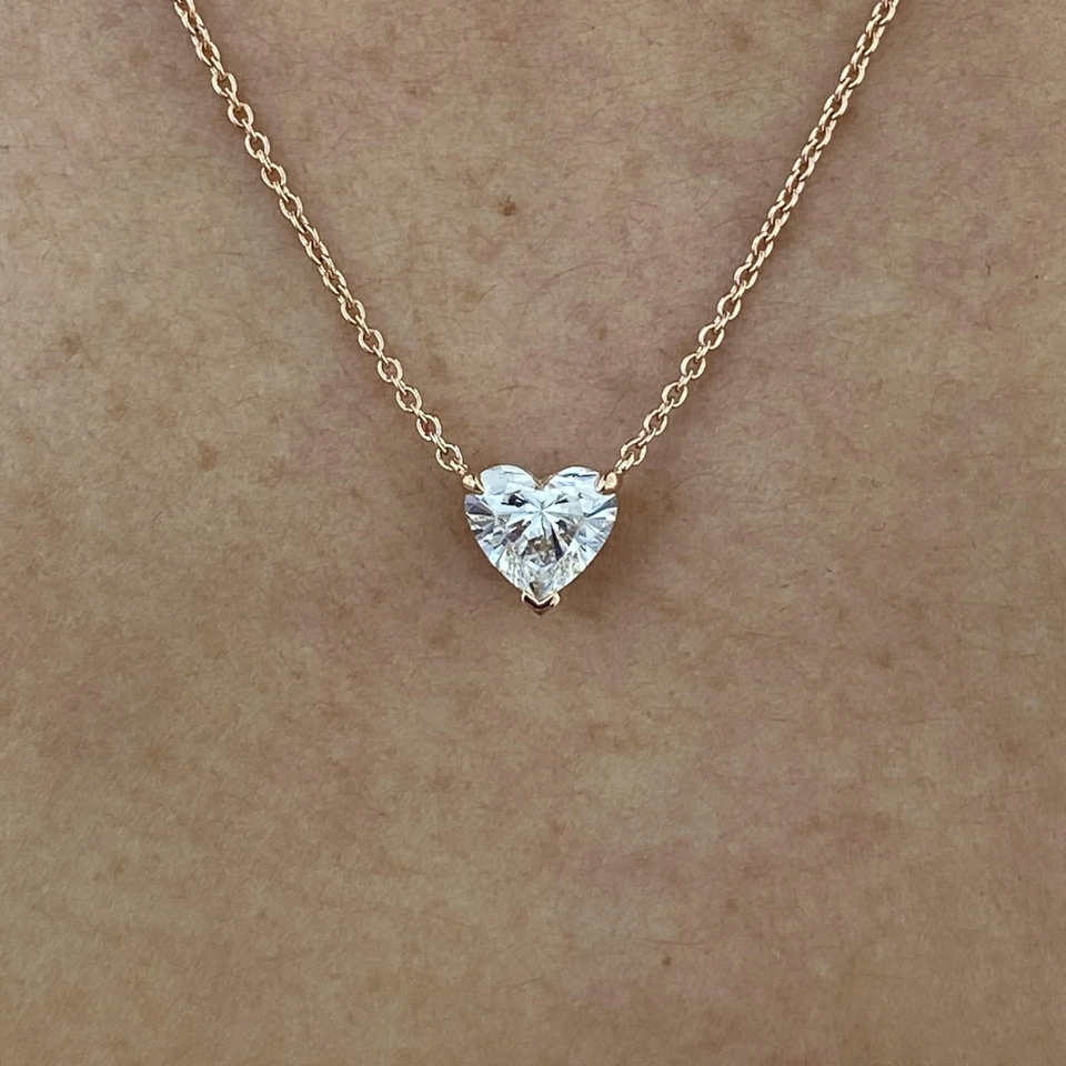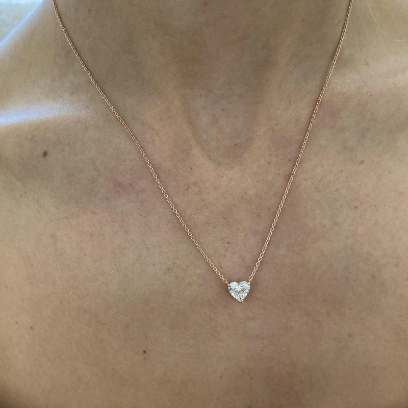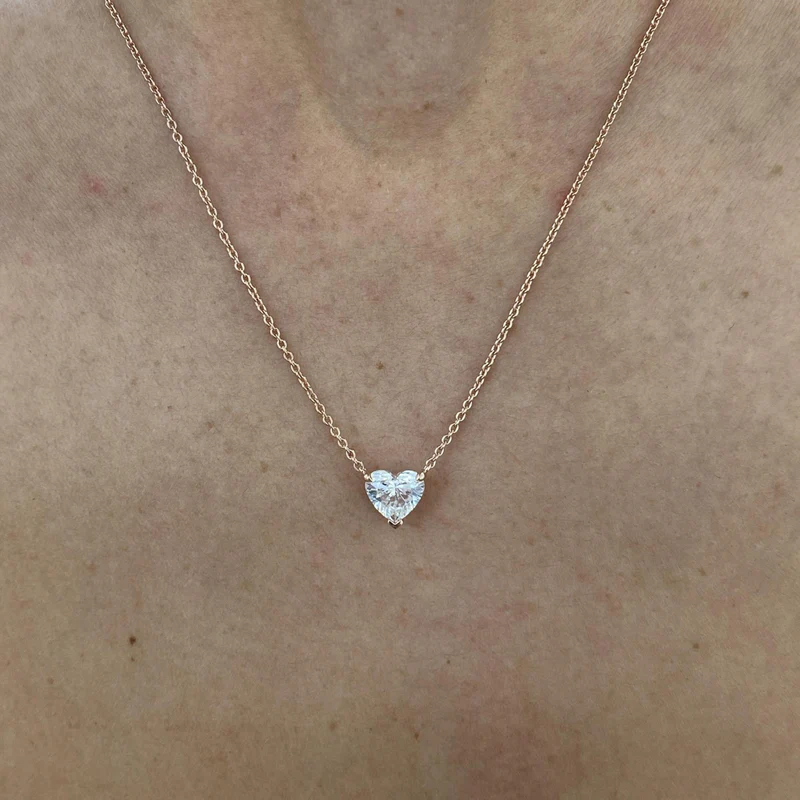 สร้อยคอประดับจี้เพชรสีทอง14K ได้รับการรับรองรูปหัวใจ1 CT เครื่องประดับแฟชั่นหรูหราสำหรับผู้หญิง