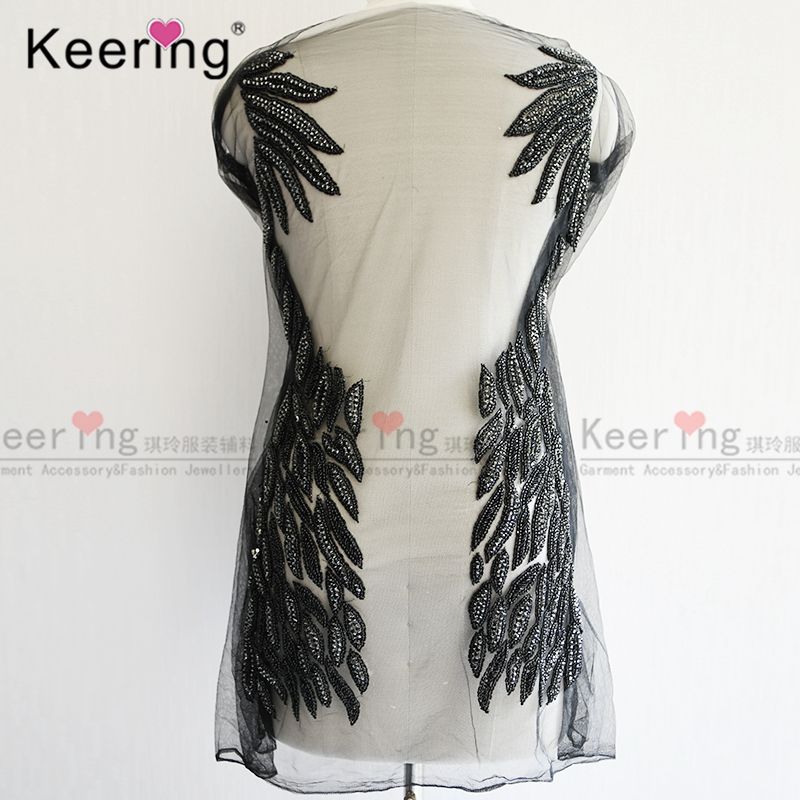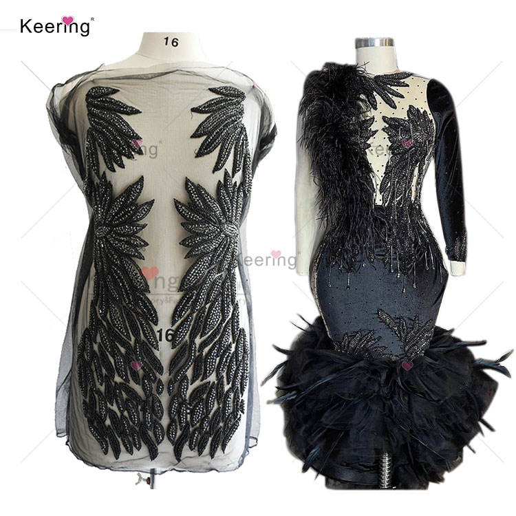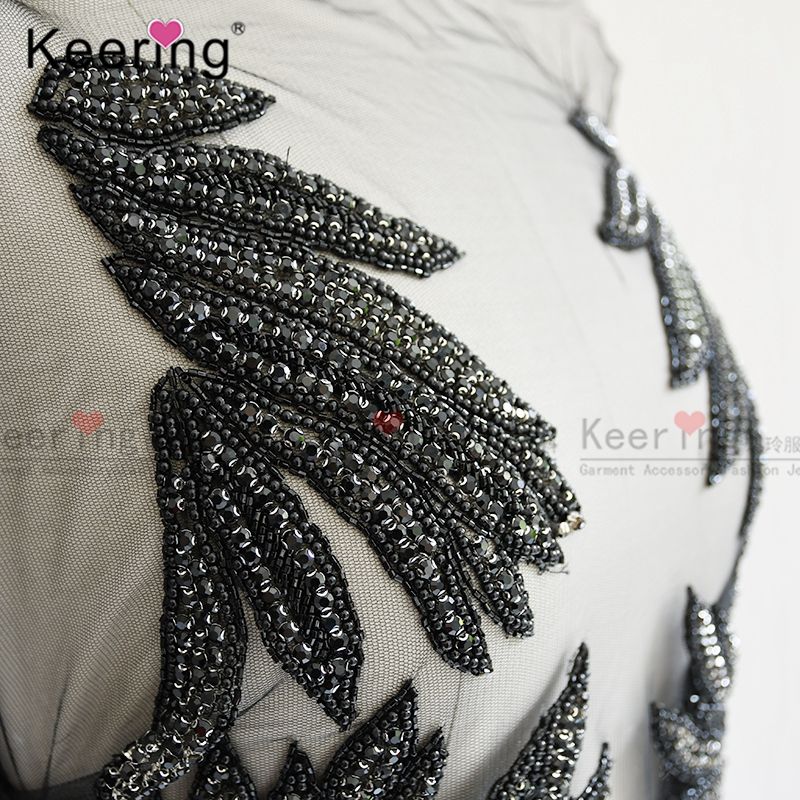 แผ่นปะติดเสื้อตัวบนสำหรับเจ้าสาวประดับมุกคริสตัลใสสีดำงานแฮนด์เมดสวยงาม WDP-076ชุดแต่งงาน